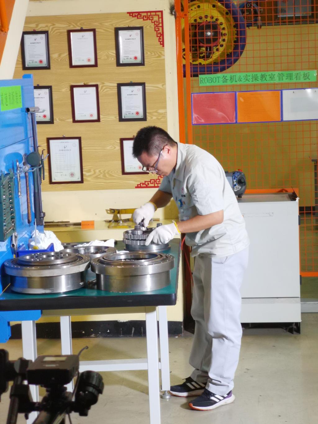 俞海金将在福建开放大学学习到的理论专业知识与自己多年实际操作经验相结合,以技能大师工作室为平台,开展师带徒的培养模式,为公司发展培养了大批技能人才;他不仅是校企合作的兼职教师,还是福州市职业能力建设库专家,担任市级以上各类技能竞赛裁判、评委11次,担任中、高职院校课程专业开发设置论证及人才培养方案认证专家7次,到企业、学校开展技术讲座、技术支援9次,得到校企双方的一致好评与肯定;大力传承和弘扬劳模精神、工匠精神,充分发挥劳模工匠的引领示范作用,积极承担社会责任,产生了良好的社会效应。他引领设备改造30余项,获得实用新型专利56项。不仅是“省劳模工作室”、“省技能大师工作室”领办人,还先后获得了“第十五届全国技术能手”、“福建省五一劳动奖章”、“福建省技术能手”等多项荣誉称号。