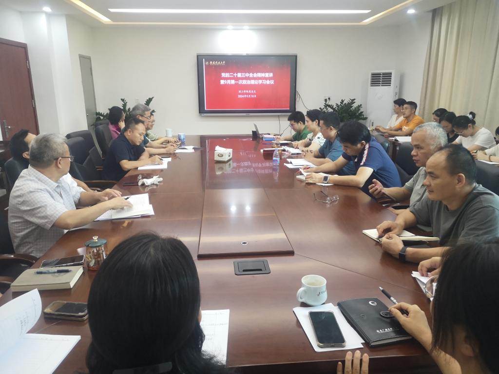 会议最后,雷乃旺向全体教职工表达深切期望,勉励大家把握本次学习机会,深入领会党的二十届三中全会精神,并转化为驱动理工学院迈向高质量发展的强劲动力,以新学期为新起点,不断提升个人的政治站位,不断深化思想认识,全身心投入做好下半年任务目标冲刺收尾工作。