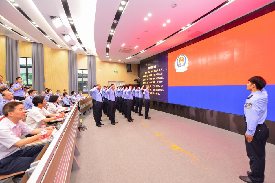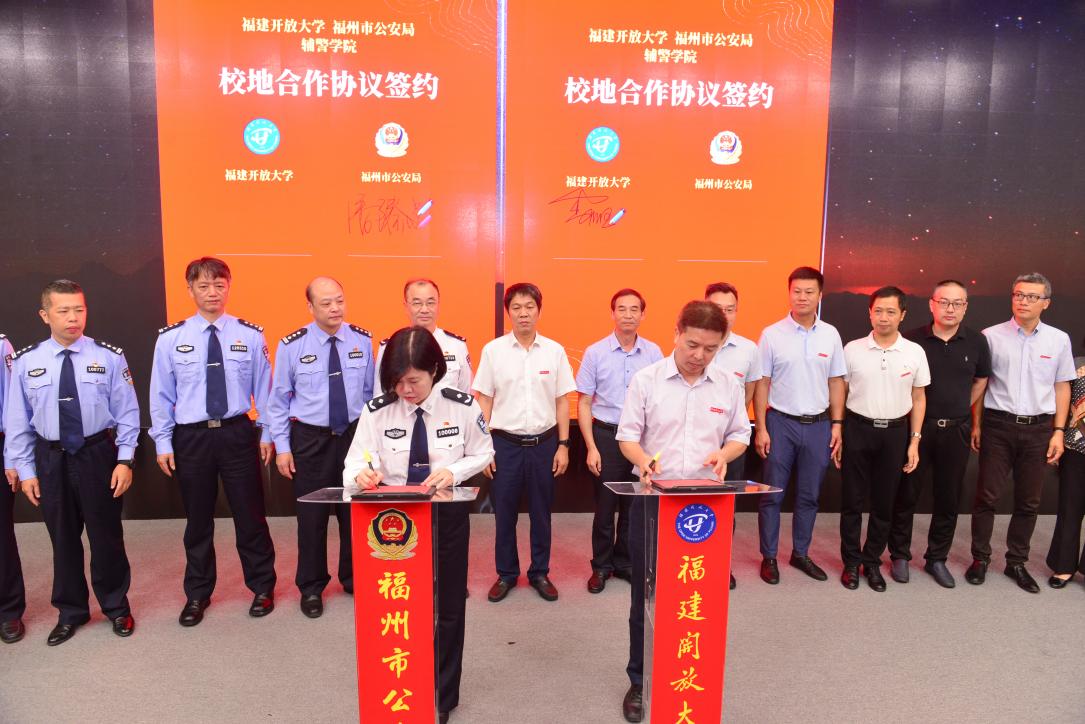 以青春之我,蓄护航之力。2021年6月23日上午,在举国上下同庆建党100周年华诞之际,我校和福州市公安局校地人才培养合作框架协议签约暨“辅警学院”成立揭牌仪式在桂山校区智慧教室隆重举行。福建开放大学党委副书记、校长吴国荣,福州市公安局党委委员、政治部主任潘臻颖,福建省公安厅人事处副处长李金星等领导出席活动仪式。在双方领导、与会嘉宾的共同见证下,校警双方正式签署人才培养合作框架协议,随着闪闪金砂推下,“辅警学院”四个大字熠熠生辉,标志着福建开放大学、福州市公安局辅警学院正式成立。