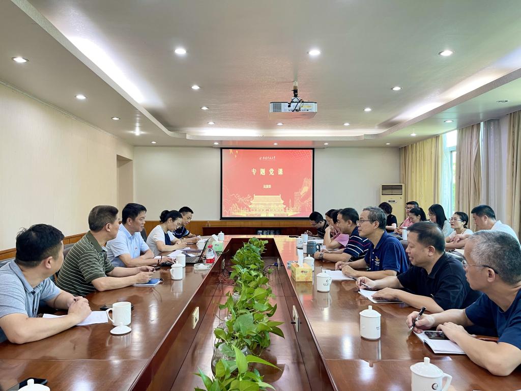 为推进党史学习教育,认真学习贯彻习近平总书记在庆祝中国共产党成立100周年大会上的重要讲话精神,按照学校党委部署要求,7月8日上午,学校党委副书记、校长吴国荣为学校有关部门的党员讲授专题党课。专题党课由理工学院党总支书记雷乃旺主持。理工学院党总支、人事处党支部和培训学院党支部全体党员共计30余人聆听党课。
