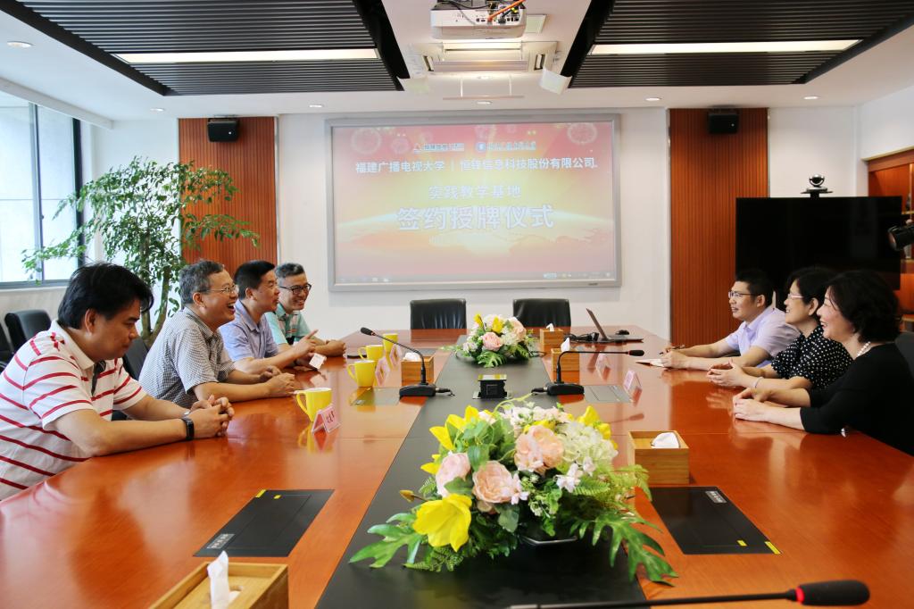签约仪式后,双方就如何开展实践教学活动和加强校企合作等方面进行了会谈。雷乃旺简要介绍了福建电大发展历程以及理工学院师资力量、学科建设和招生办学等情况,感谢恒锋信息科技股份有限公司对我院办学的支持。他表示,此次建立实践教学基地,对促进学院在计算机专业学科建设、应用型人才培养质量方面将产生积极作用。魏晓曦希望在今后的合作过程中,不断拓展合作内涵,创新合作形式,开展多元化深层次的合作,欢迎电大教师将自己的学术造诣、学科研究成果与企业项目开发进行对接,实现资源互补,合作双赢。雷乃旺一行还参观了恒锋信息科技股份有限公司。
