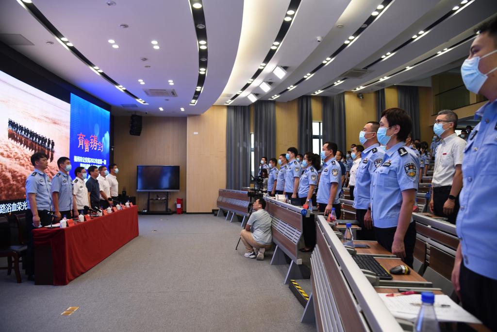 7月12日上午,在全省上下深入学习贯彻党的十九届六中全会精神、聚力“提高效率、提升效益、提增效能”行动之际,福建开放大学、福州市公安局辅警学院2022年度第一期“育警铸剑”主题警务辅助人员教育培训班在福建开放大学桂山校区智慧教室正式开班。福建开放大学党委委员、副校长李正光,福州市公安局党委委员、政治部主任郑南,福建省公安厅人事处副处长刘哲立等领导出席开班仪式。首期培训共有100名辅警学员代表参加。