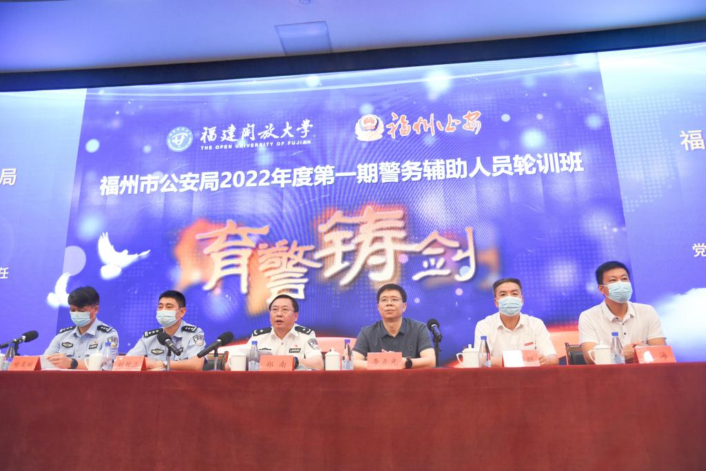 福州市公安局警务辅助人员管理处、福建开放大学党政办公室、宣传部、教务处、学生工作处、职业学院、理工学院、文经学院、公管学院相关人员、新闻媒体记者等参加了开班仪式。