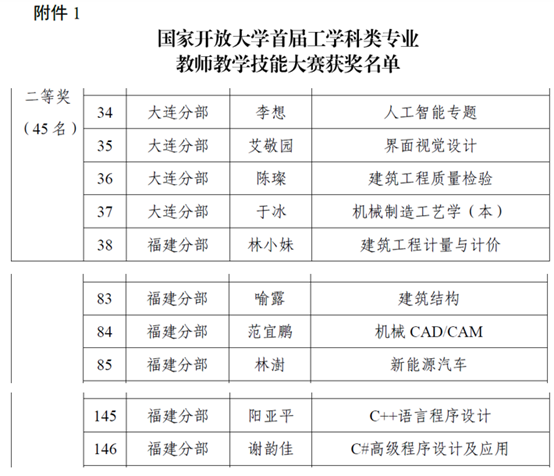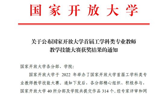 近日,国家开放大学首届工学科类专业教师教学技能大赛的作品征集和专家评审阶段工作已经结束。根据《国家开放大学关于举办首届工学科类专业教师教学技能大赛的通知》要求,理工学院提交7份作品进行参赛,经过评选委员会评审,我院共计获得6个奖项:林小妹老师荣获二等奖,喻露、范宜鹏和林澍老师荣获三等奖,阳亚平和谢韵佳老师荣获优秀奖。