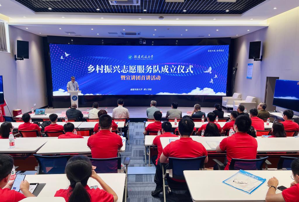 为探索“乡村振兴人才培养工程”育人模式新路径,推进主题教育走实走深,6月25日上午,理工学院在左海校区智慧教室举行乡村振兴志愿服务队成立仪式暨宣讲团首讲活动。校党委副书记马成斌应邀出席成立仪式,学生处负责人、学院党总支委员、农科教师和志愿服务队成员约50人参加。成立仪式由理工学院副院长黄林昊主持。