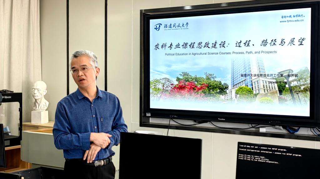 研讨活动上,学校课程思政“教学名师工作室”祁芳斌教授回顾了农科专业课程思政建设过程及主要成果,重点梳理了课程思政建设过程中的主要做法和几点思考,提出了“组建团队、提炼主线、细化元素、打造精品”的课程思政体系建设思路。通过内容和组织联动体系的构建,让农科类课程思政内容形成良性联动与互补,让体系内各类成员互动互联,达到课程育人同频共振的效果。