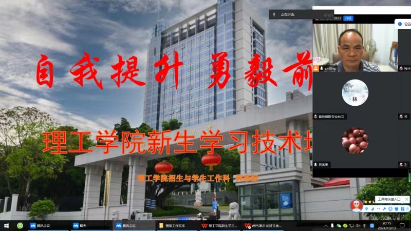 金秋时节,丹桂飘香。为帮助新生尽快熟悉开放教育学习方式,明确学习目标,理工学院在学校开学典礼结束后,以线上线下相结合的方式开展2024年秋季新生入学教育系列活动,学院院领导及新生班主任参加活动。活动由副院长黄林昊主持。