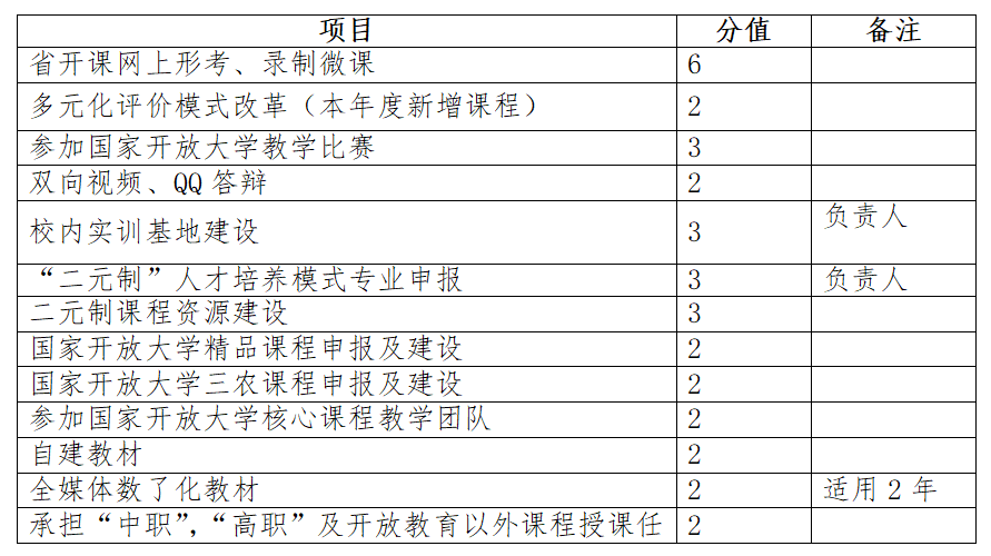 教师本年度参与教学改革创新项目及分值见下表,本项最高得分15分为限。